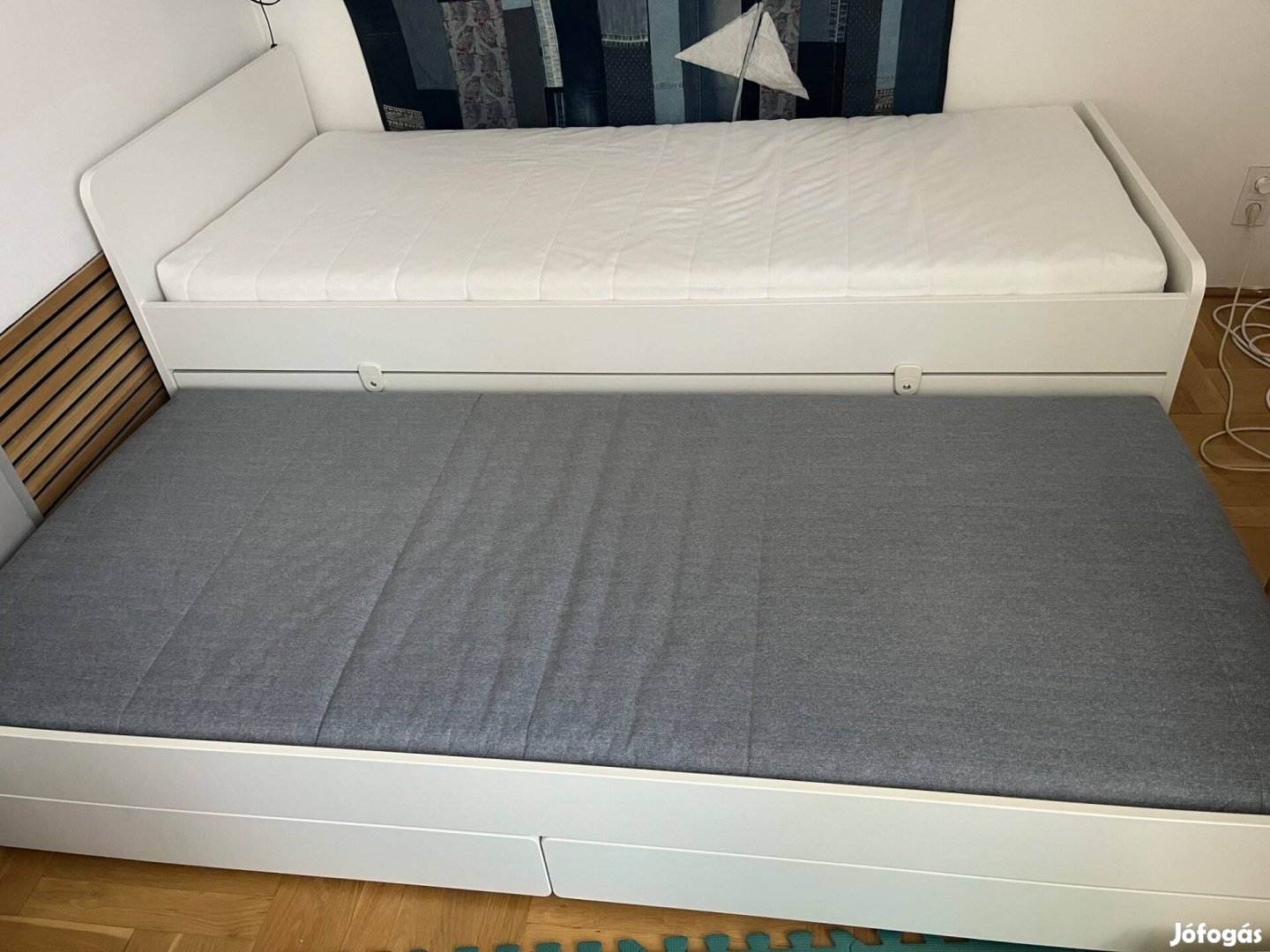 Szoba átrendezés miatt eladó släkt ágyunk. Két évet használtuk viszont család bővülés miatt egy másik ágyra váltunk. Az alsó kihúzható ágyat csak vendégágyként használtuk. Az eredeti ára az ágynak 99.990. A felső matrac típusa afjall habszivacs eredeti ára 36000. Az alsó matrac agotness habszivacs: 16990 ért. A mérete az ágynak 206x96 cm a vendégággyal együtt 189 cm
