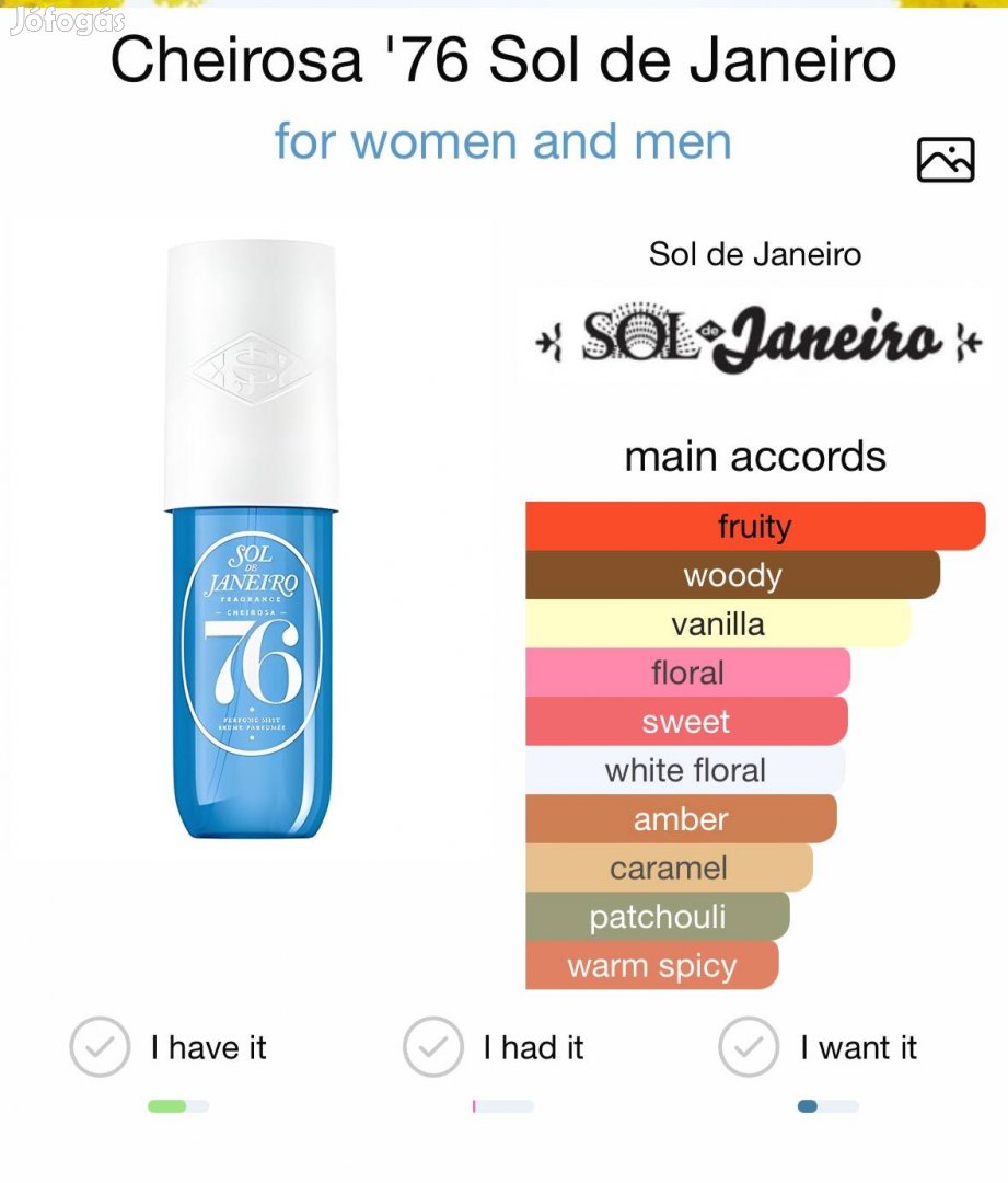 Eladó Sol de Janeiro Cheirosa 76 parfüm-testpermet. Kiszerelés: 90 ml.