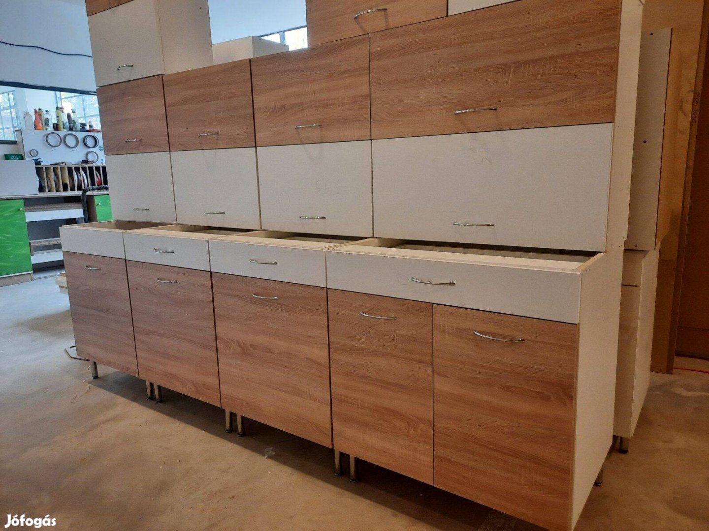 A konyhabútor egyedi méretben, akár modern fényes, vagy rusztikus MDF mart fronttal is legyártható rendkívül kedvező áron.