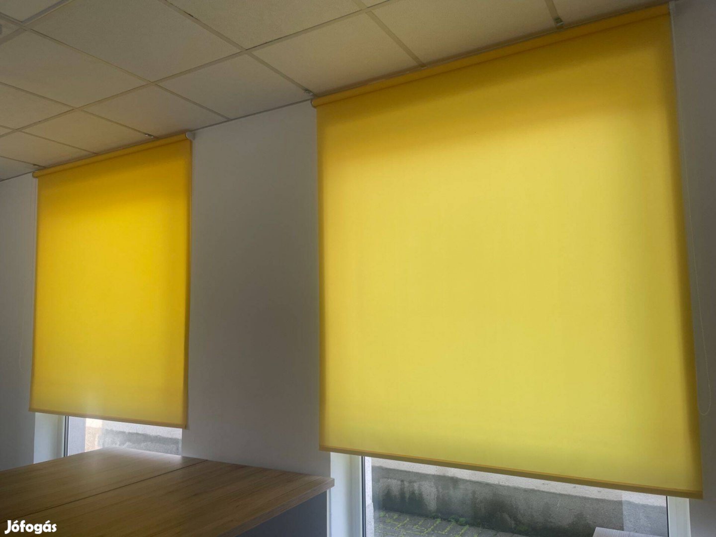 Kiváló minőségű sötétítő rolók, sárga és kék színben. Gyöngyláncos, 100%-os fényzárás, ki- és belátást gátló textil, fehér fém szerkezet.