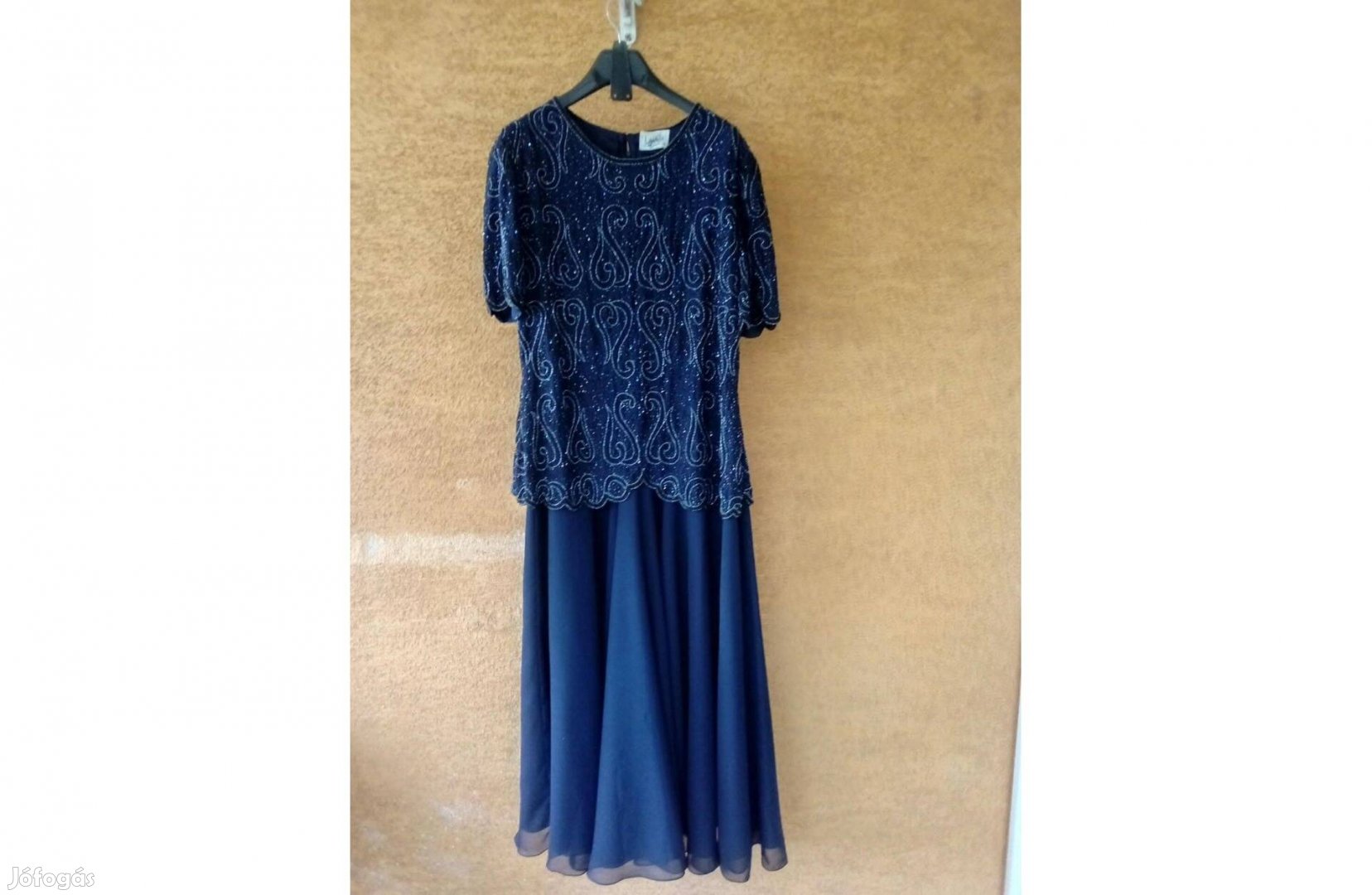 Keveset használt, gyönyörű, lefelé bővülő, 18-as méretű női ruha eladó. Méretek: mellbőség:110 cm, hossza:140 cm, díszített hossza: 68 cm, vállszélesség:48 cm.