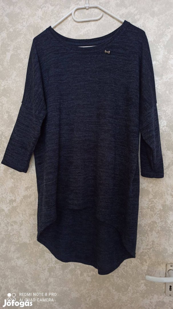 Sötétkék fekete kötött aszimmetrikus pulóver 42-es méretű