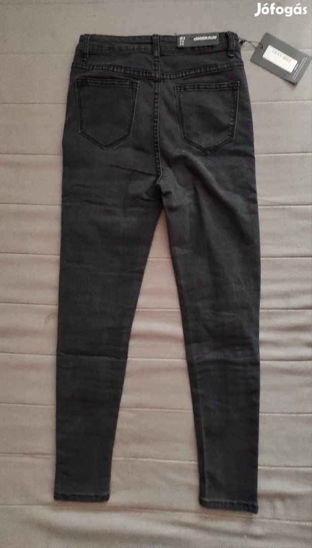 Új, címkés sötétszürke, szaggatott farmer nadrág.