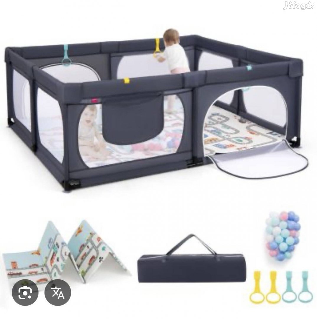 Szürke babakarám ,járóka, kapaszkodóval, cippzáras ajtóval, tároló zsebbel, 50 db labdával, tapadókorongos lábakkal