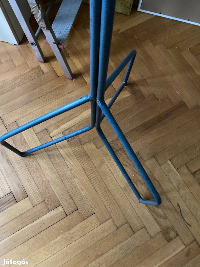 Gyönyörű retro fém fogas, fémes világoskék-narsncssárga műanyagfejjel.. A lábrészénél kisebb kopásnyomok.