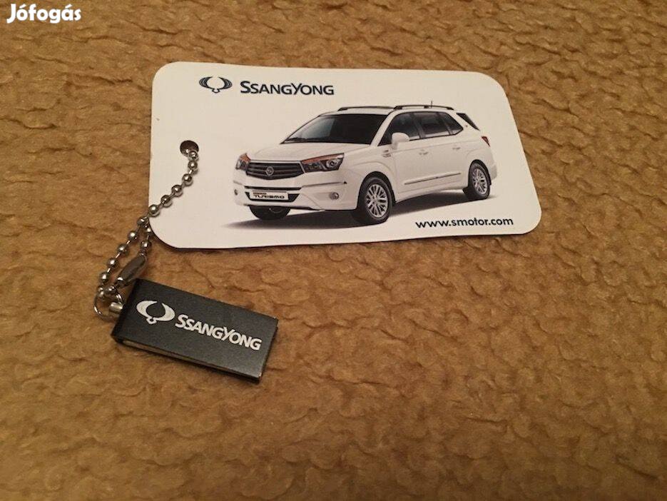A dél-koreai Ssangyong Motors fém USB 2.0 pendrive-ja. A mérete 4 GB-os, rajta anyagok fotókkal, videókkal, adatokkal, szöveggel a márka modelljéről.