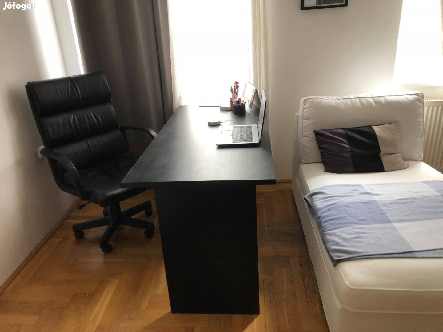 67 × 145 méretű, nagyon stabil, szétszedhető íróasztal eladó. Az írófelület nem kopott, a bal oldalsó élen és a lábak alján van kopás. Kényelmes, nagy méretű, alá akár egy kis szekrény is befér.