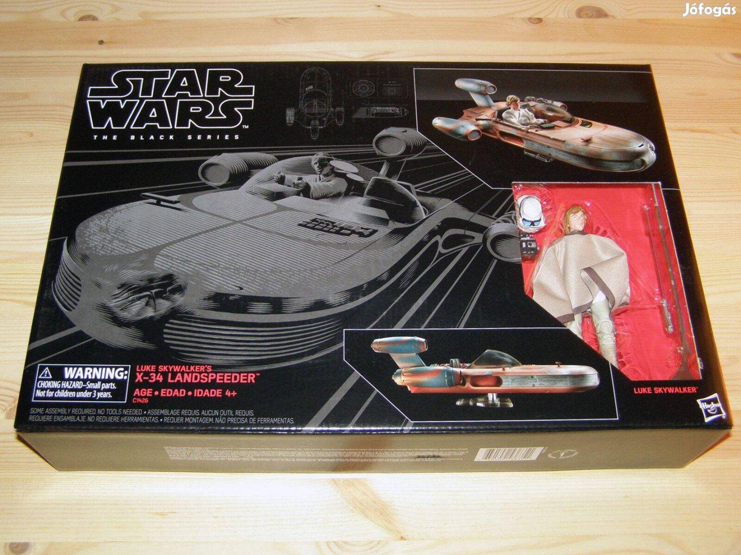 Star Wars, The Black Series Deluxe #02 X-34 Landspeeder és Luke Skywalker (A New Hope) jármű és akciófigura, bontatlan, friss, ropogós, vadonatúj állapotban, napfénytől védett helyen tárolva, kisállat- és dohányfüstmentes otthonból. Gyűjtői darab! Méret: 15 cm (6 inches). Kiadás éve: 2017. Eredeti licencelt termék, Hasbro.