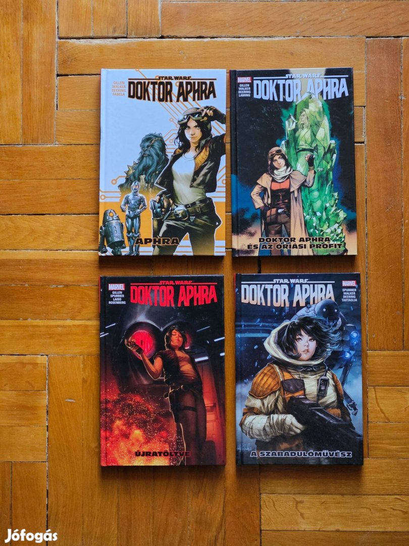 Eladó a képen látható könyvcsomag, mely a Star Wars Doktor Aphra képregénysorozatának 1-4. részeit tartalmazza. Az első könyvbe volt belelapozva, a többi szinte ki sem volt nyitva.