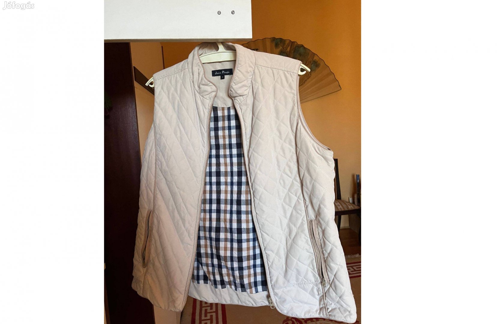 Világos bézs mellény. Nagyon szép bélése van. Oldalában két cipzáros zseb. Beírt méret M. Alig használt.