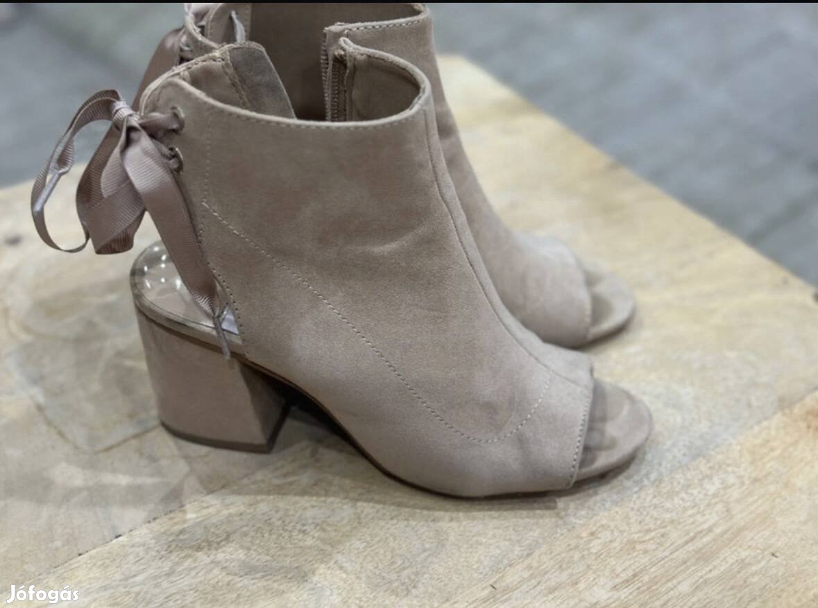 Stradivarius drapp magassarkú bokacipő 36
