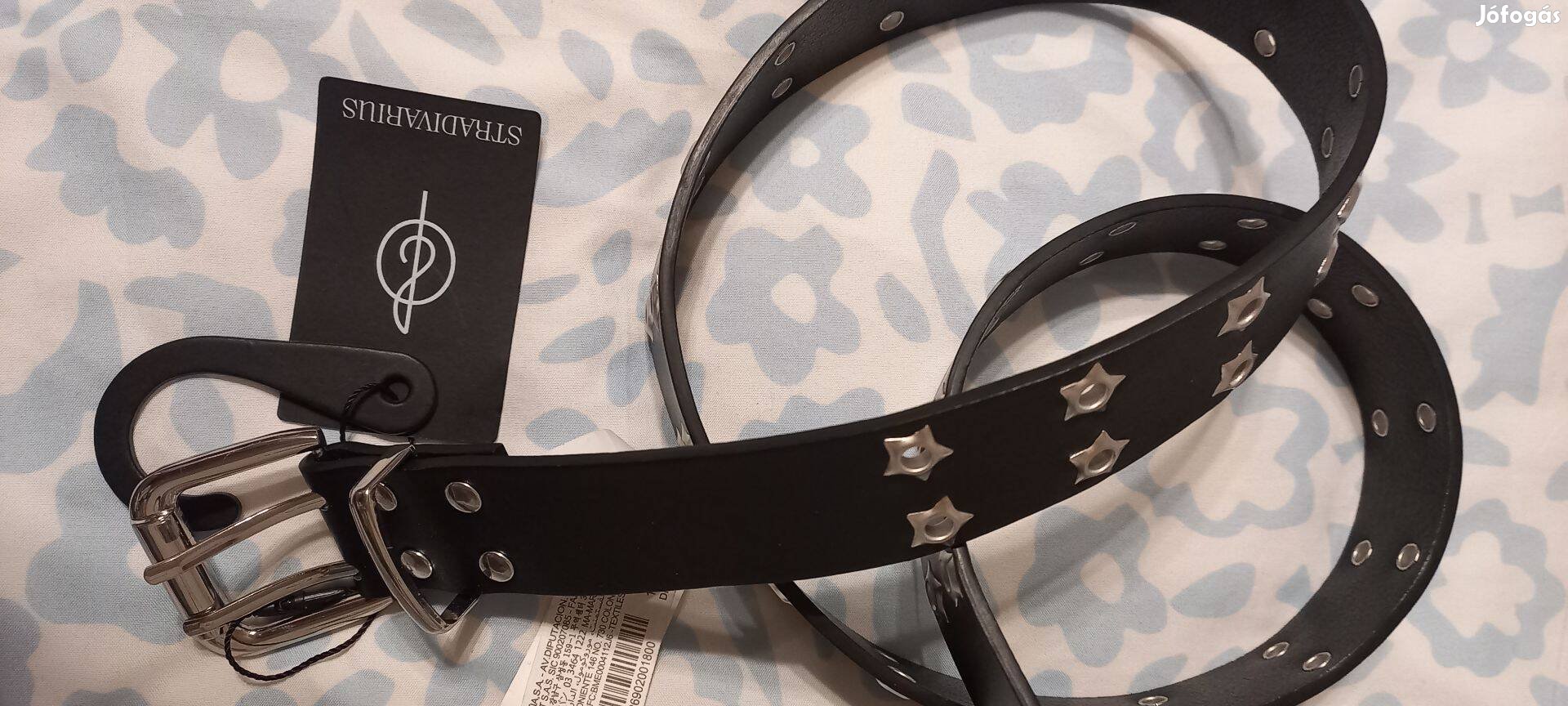 Stradivarius fekete bőrőv szegecselt díszitéssel - Új!!! Hossza 95 cm. Személyes átvétel Bp. III.Óbuda. Posta Foxpost!!!