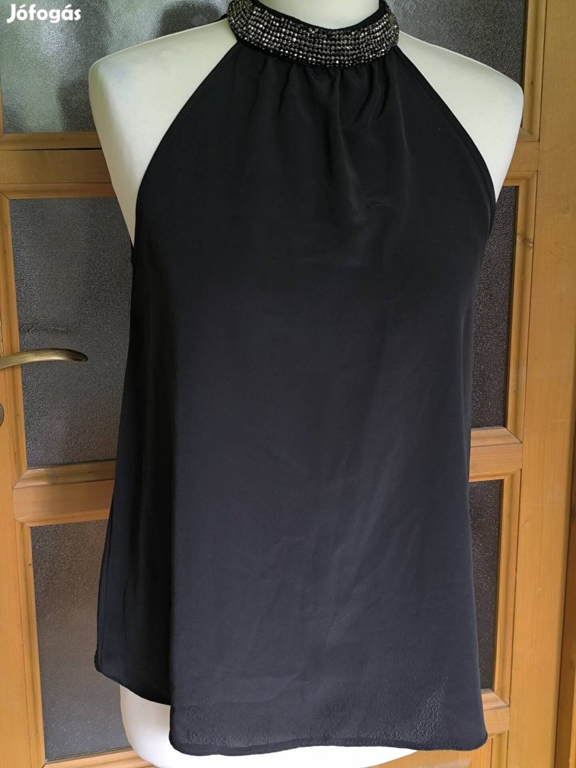 New Look, 36-os, fekete alkalmi ujjatlan felső, nyakban megkötős, strasszos díszítéssel.