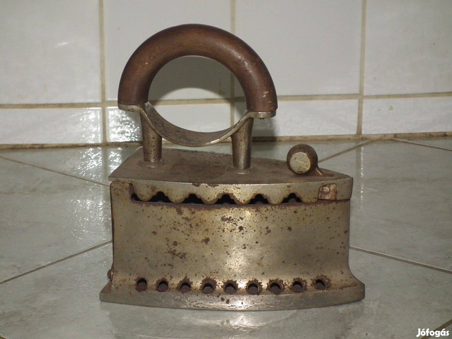 Antik szenes vasaló Sphinx 3, magassága 22 cm, hossza 21 cm., legszélesebb részen 10 cm., súlyos szép darab 2, 5 kg., a belsőrács is megvan.
