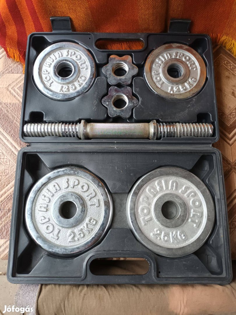 TOP Asia súlyzókészlet, tartó dobozzal, hibátlan állapotban. 2db 2,5kg és 2db 1.25kg tárcsával. Ú ára 15eft volt.