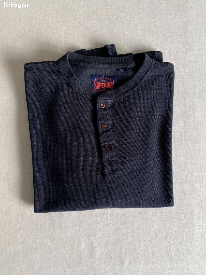 Eladó Superdry férfi gombos nyakú hosszú ujjú póló, sötétkék, kiváló állapotú, L-es méretben.