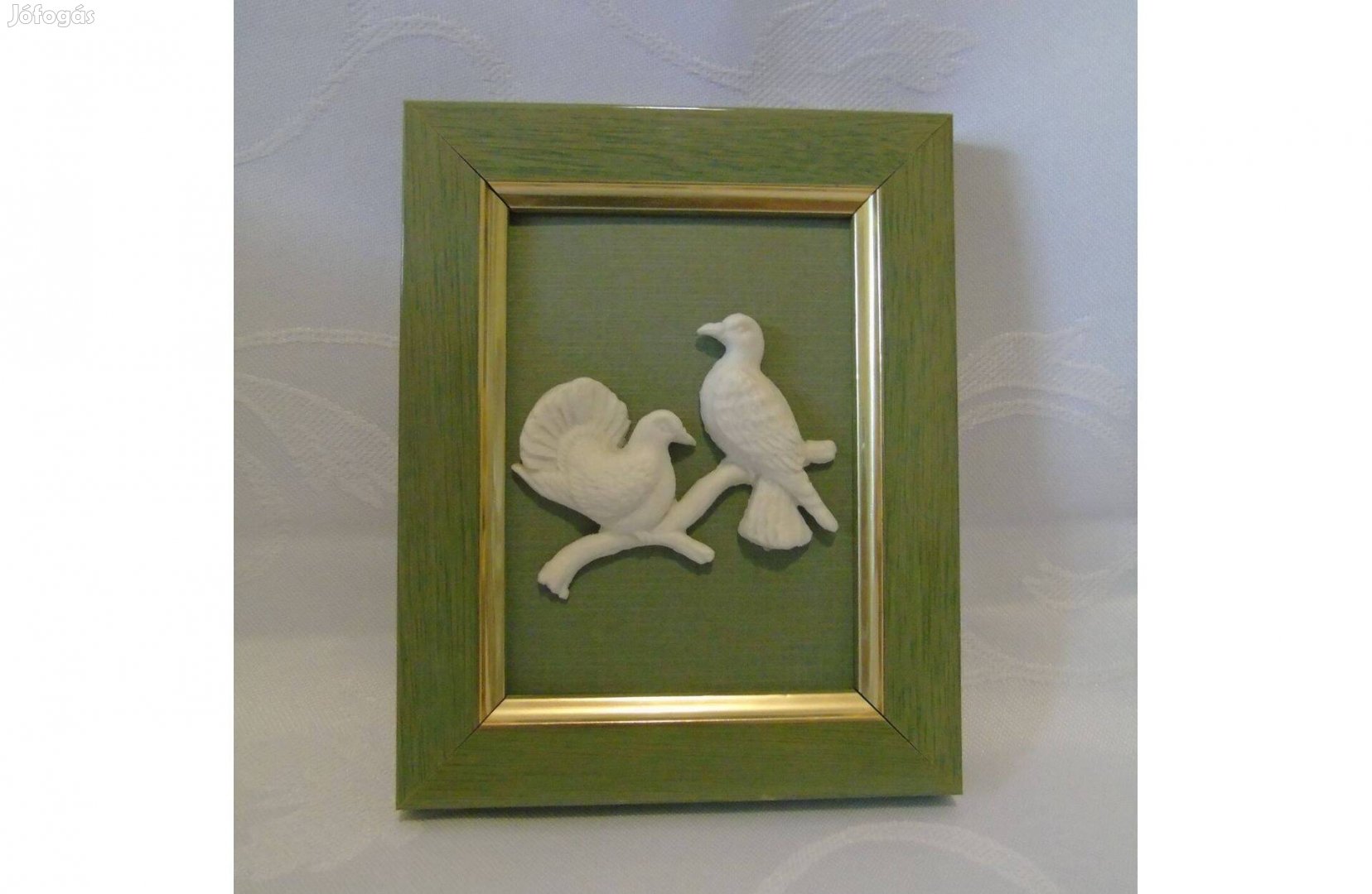 Susan Norton Fehér porcelán madarak zöld keretben dísztárgy