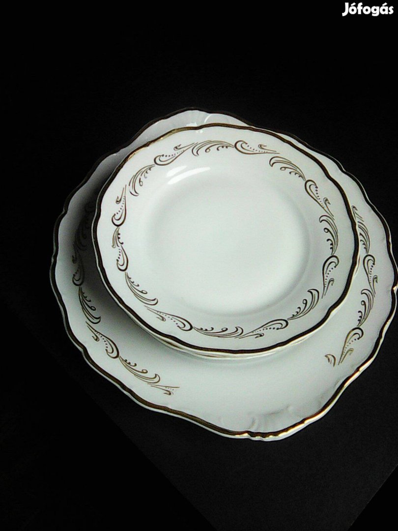 Csehszlovák süteményes 6 db kistányér 1 db kínáló tál aranyozott szegéllyel a képen látható újszerű állapotba eladó bármikor ellehet vinni