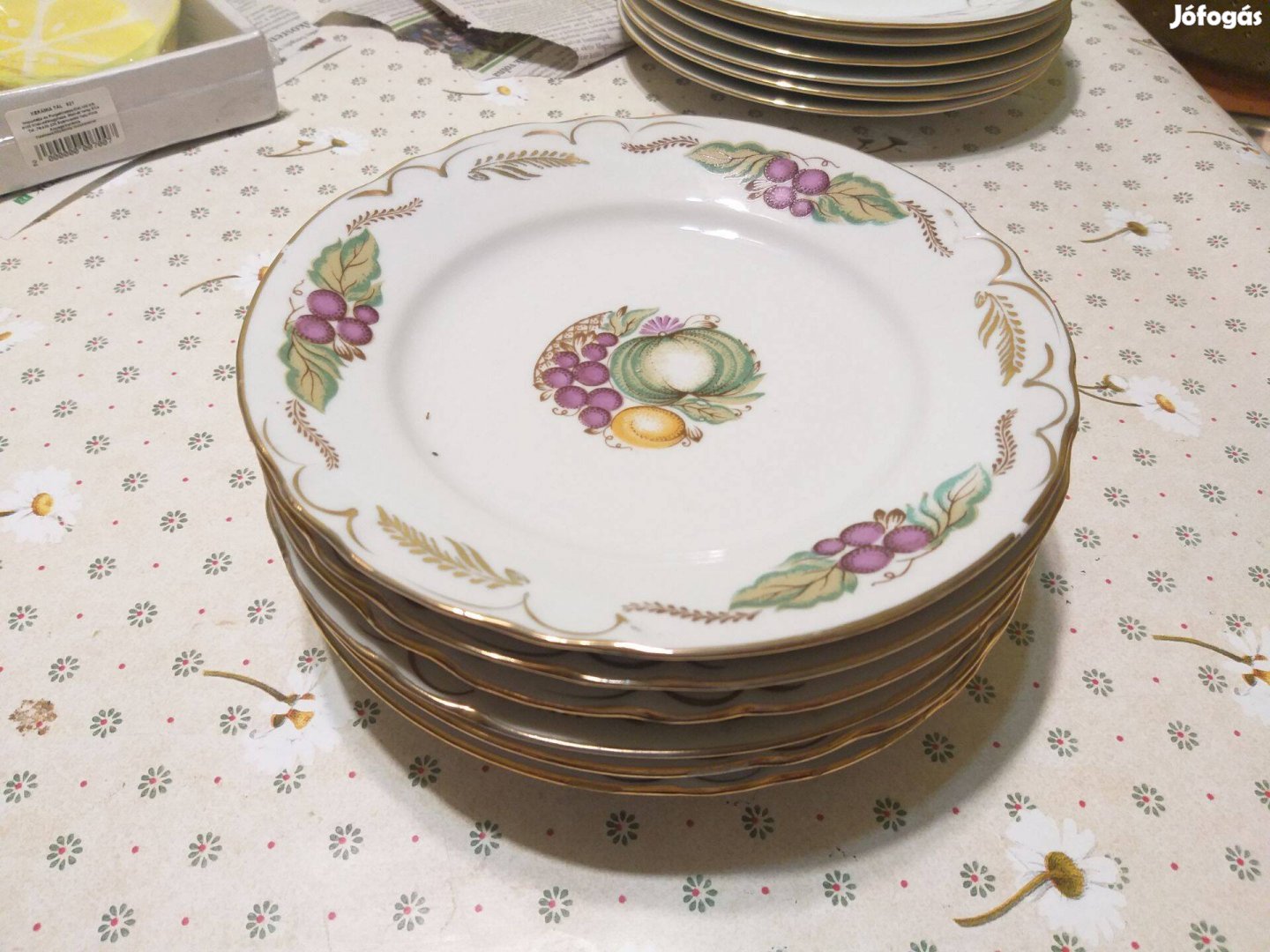 Süteményes tányérok, 6 db porcelán tányér, zöldség mintás