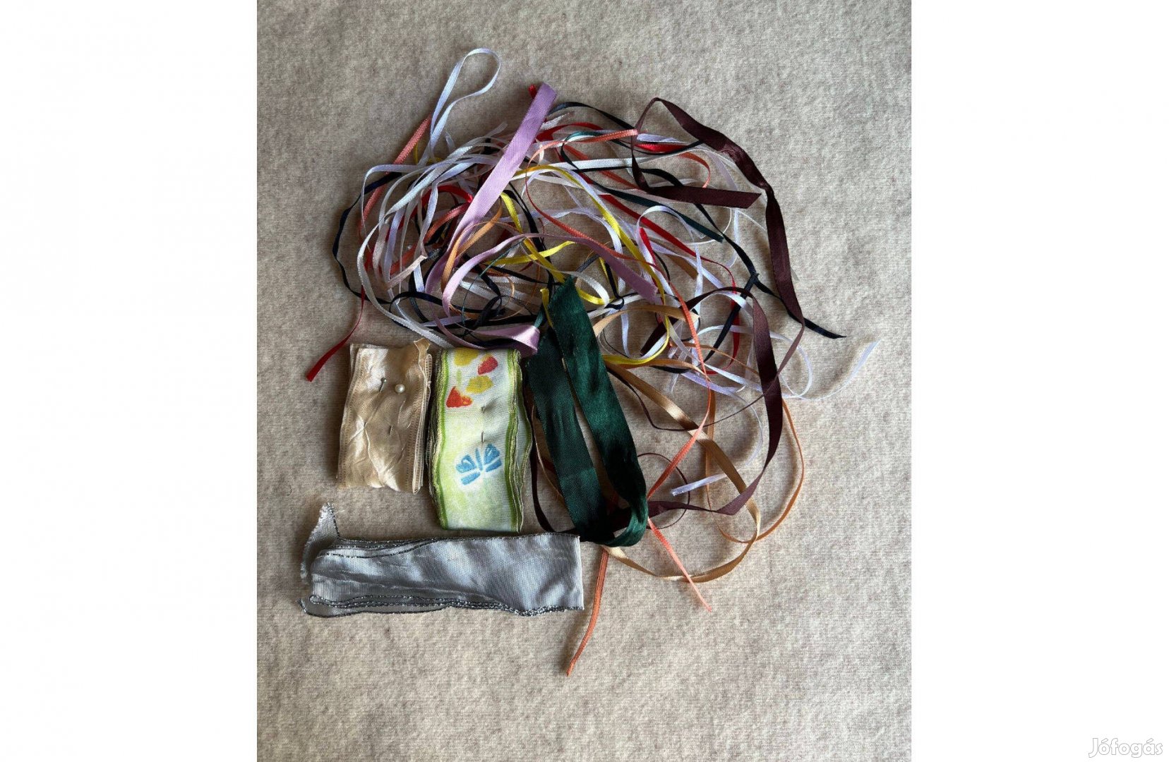Új kiváló állapotban lévő selyemszatén szalag csomag eladó. Tökéletes a ruhák, szoknyák, blúzok, táskák, kézitáskák, lakástextíliák stb. díszítésére.