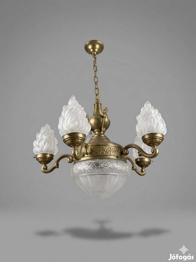 Eladó a képen látható gazdagon díszített szecessziós opál búrákkal rendelkező 5 ágú csillár