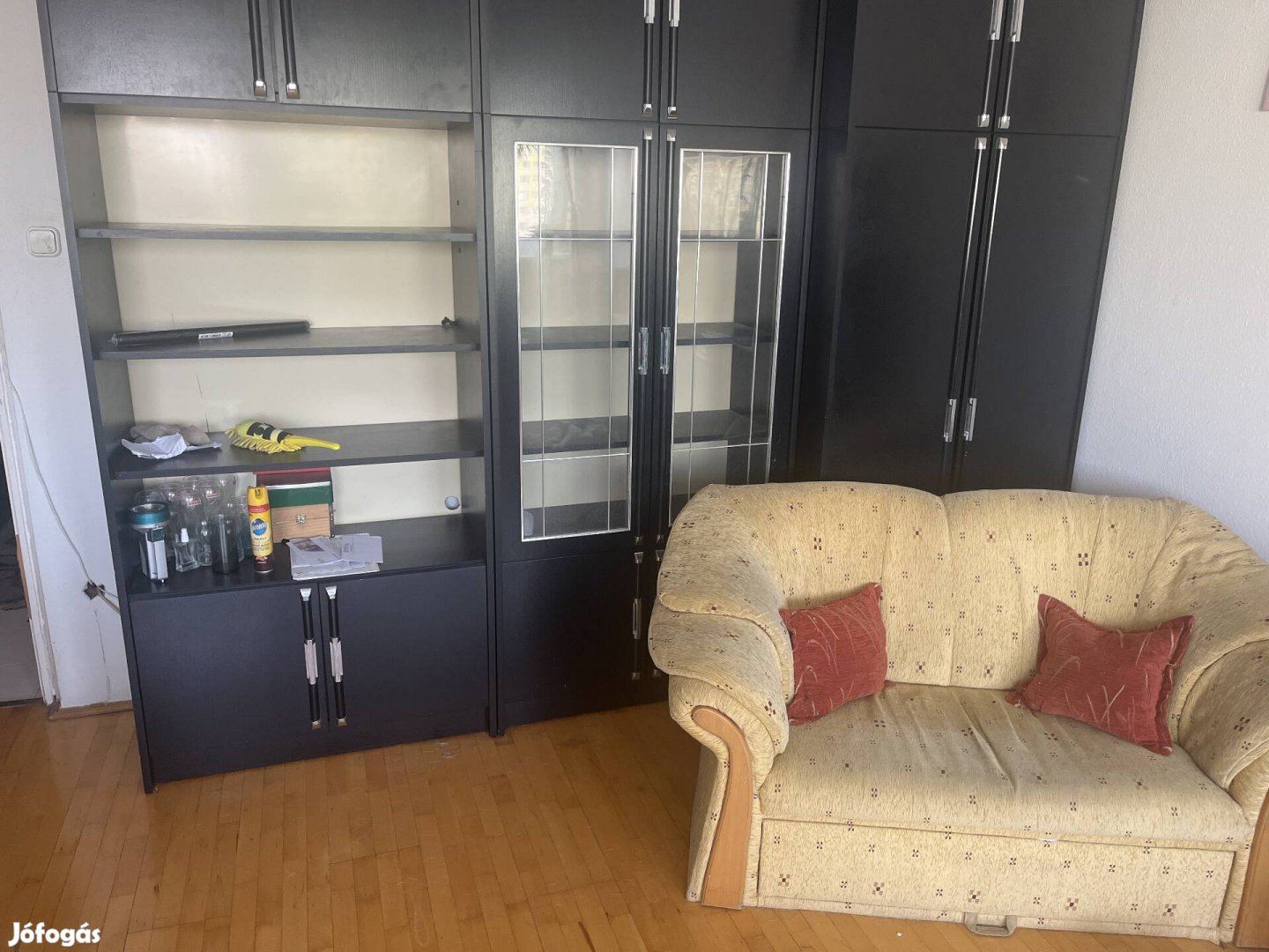 4 részes fekete szekrény sor ,plusz kanapé( nem kinyitható )