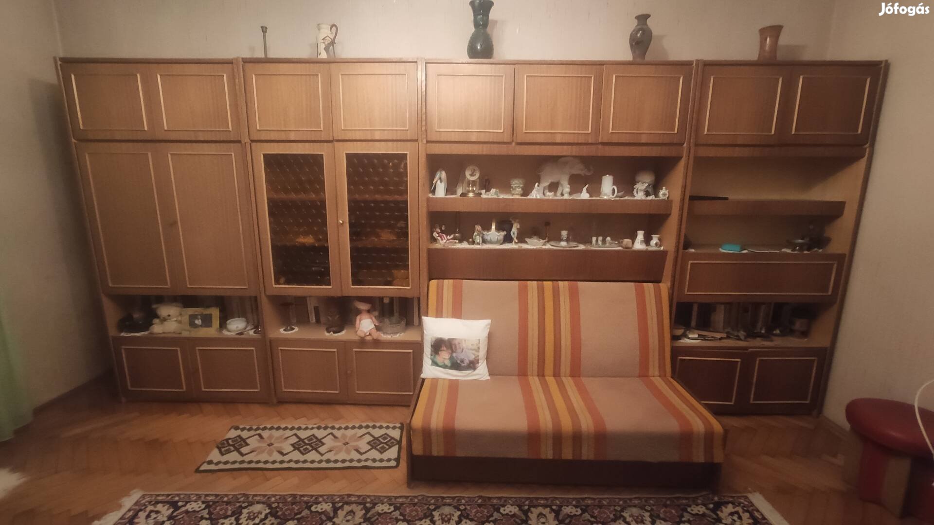 4 db 1 meteres, es 1 db 1,5 meteres (kihuzhato kanape) reszbol , plusz egy fotelbol allo retro butor ingyen viheto a 11. keruletbol. Tetszes szerint varialhatok az egyes elemek. Szallitasban nem tudok segiteni. A kepen meg lathato porcelanok nem jarnak a butorhoz :)