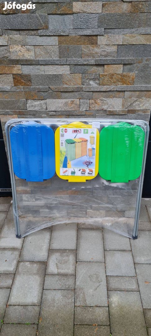 Eredeti csomagolással ellátott, teljesen új (bolti készletből maradt) szemeteszsák tartó kültéri állvány eladó. A csíptető-gyűrűrendszer lehetővé teszi valamennyi fogantyús zsák illetve az összes 20 literestől 130 literes méretű zsák rögzítését. Összecsukható, ha nincs használatban, így az állvány minimális helyet foglal.