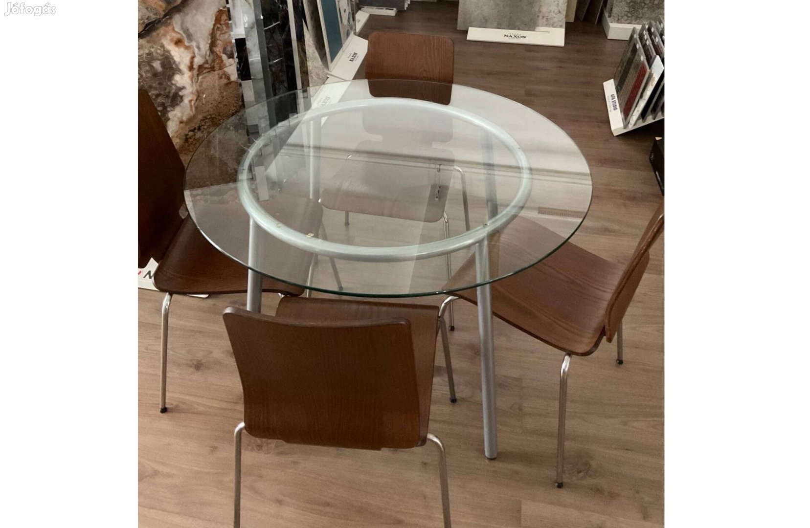 Szép állapotú, edzett üveg étkező asztal 4 székkel eladó