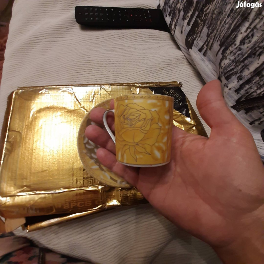 Szép nem használt aranyozott kavéskészlet keresi új gazdáját. A papír doboza sérült, de a csészek és alátétek épek.Bp.XVII.ker-ben van,itt hétköznap 17 órakor vagy hétvégén bármikor oda tudom adni. Hétköznap munka után 16 órakor a Hungária körúton is át tudom adni. Postázom postán maradó csomagként 1490 ft-ért.