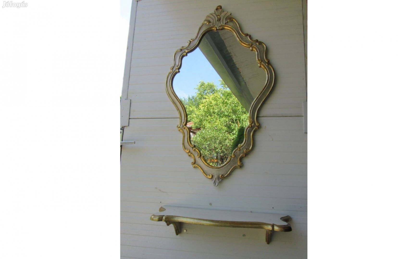 Elegáns és szép formájú fali tükör konzollal, rögtön lakásba rakható ápolt állapotban, lásd fotók.tükör: 90×54 konzol: 58cm széles, 20 cm mély, 12 cm magas.