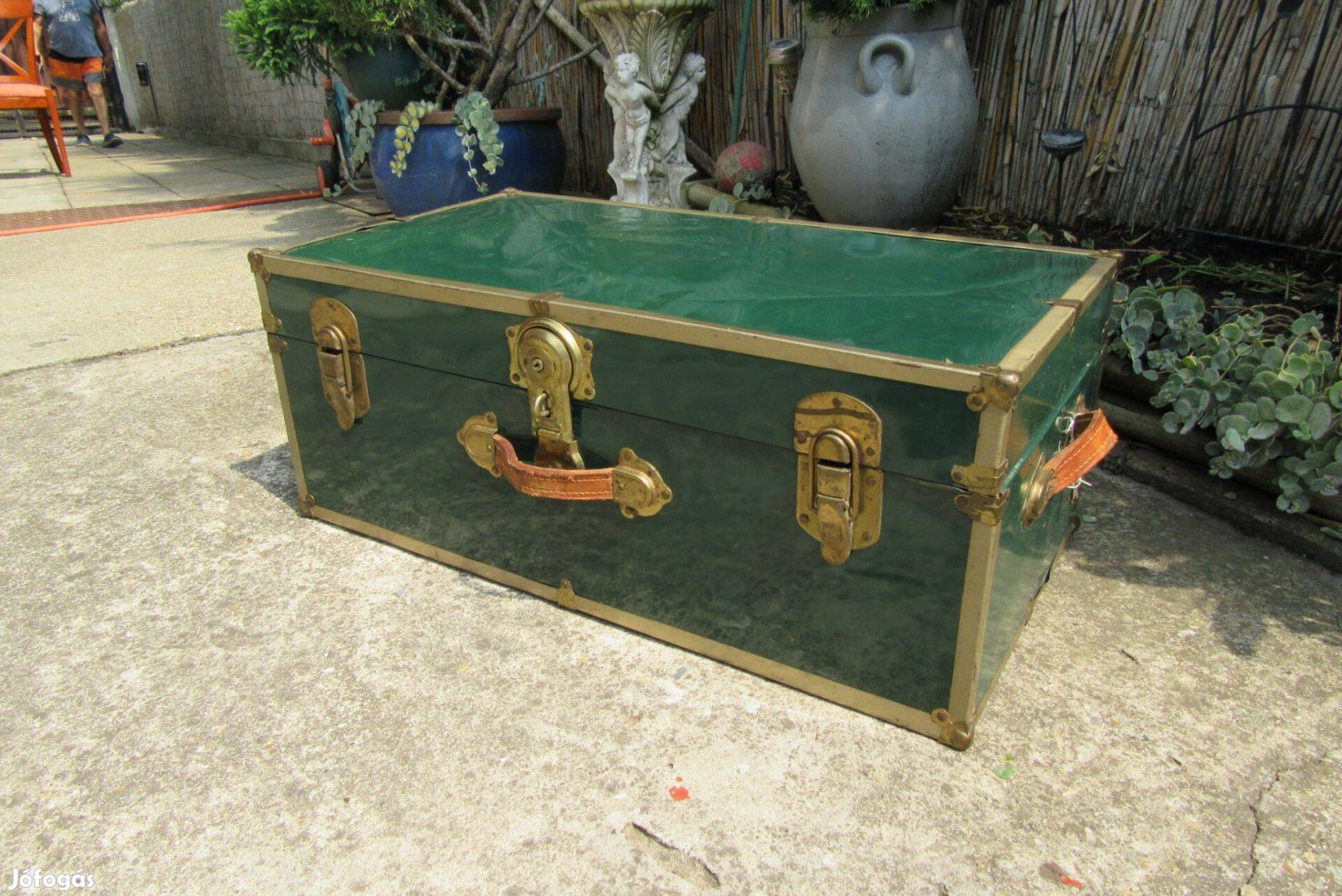 Elegáns originál régi hajókoffer-láda , rögtön lakásba rakható jó állapotban,dekorációnak tökéletes de akár használni is bármire, lásd fotók. 77 cm széles, 41 cm mély , 30 cm magas.