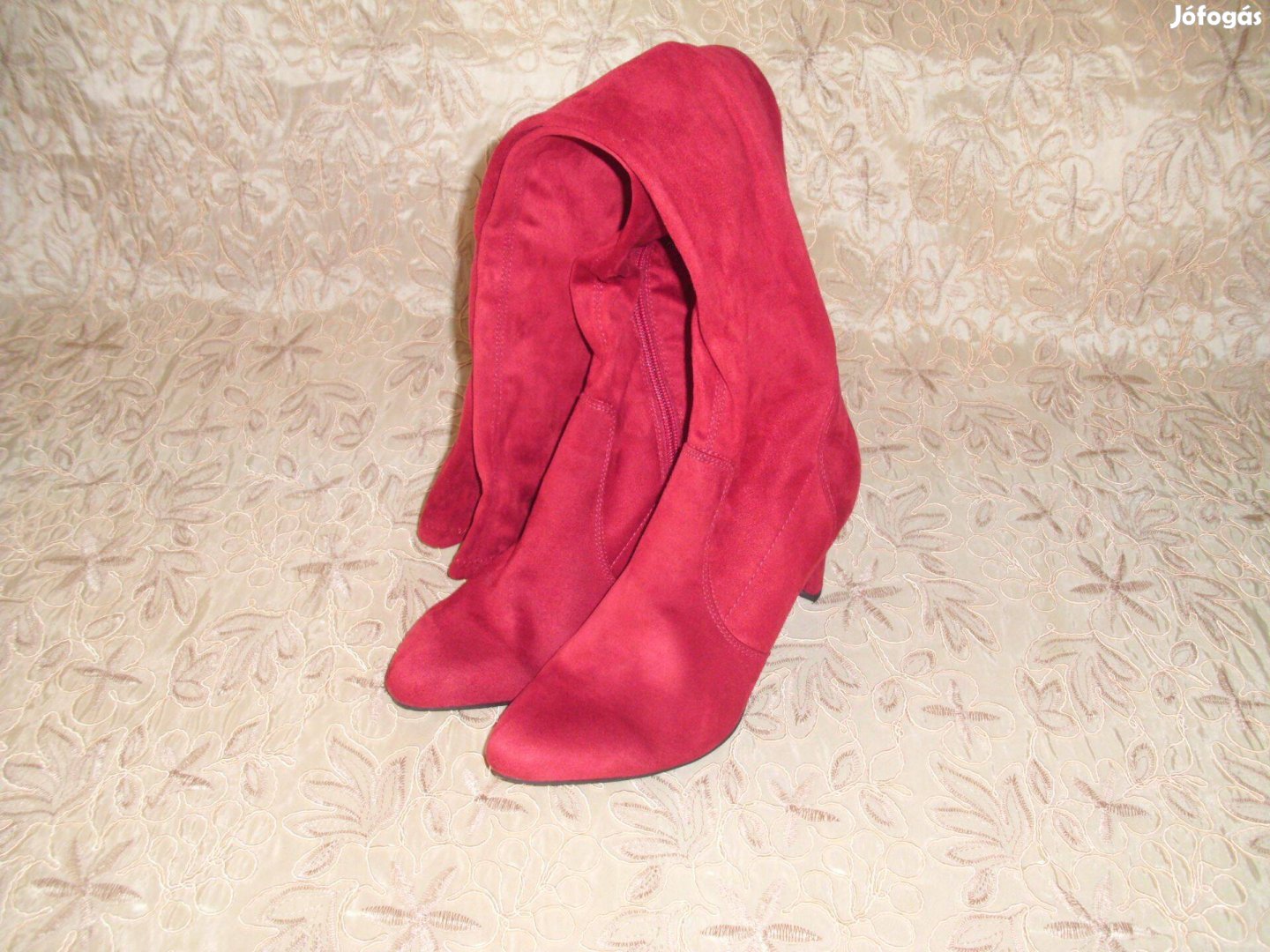 Szexi meggypiros hasított bőrszerű térdcsizma 38