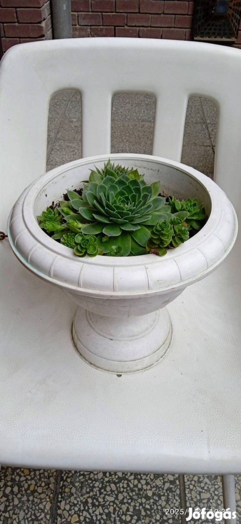 több, mint egy hónapjao Fehér színű műanyag görög talpas virágállvány, többféle gyökeres kövirózsákkal és varjúhájjal.