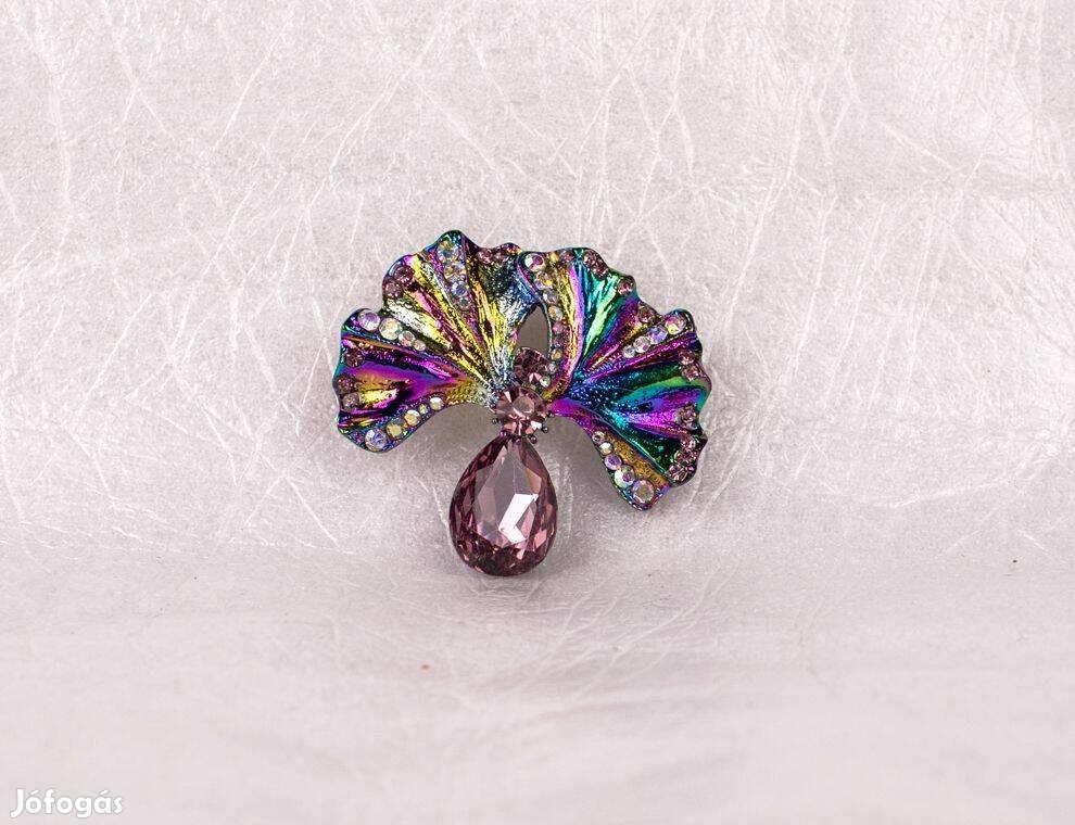 Irizáló, divatos, egyedi, színes kristályköves, strasszos bross, kitűző, új, némelyik medálként is hordható.
