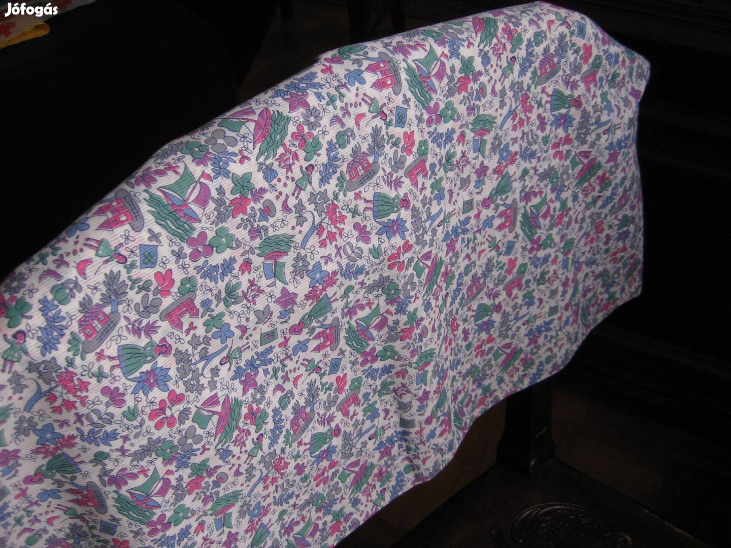 Enyhén műszálas, vékony anyag. 520 x 80 cm.