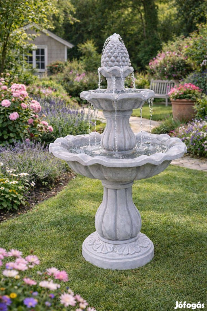 A lágyan csobogó víz megnyugtató atmoszférát teremt, amely segít kizárni a külvilág zaját és valódi pihenést biztosít. Tökéletes választás azoknak, akik a kertjükben nemcsak szépséget, hanem életérzést és harmóniát szeretnének megteremteni. A gondosan kidolgozott részletek és a masszív kivitelezés hosszú távon is prémium minőséget garantálnak. Egy ilyen díszkút nem csupán dekoráció, hanem státuszt és igényességet sugárzó központi elem.
