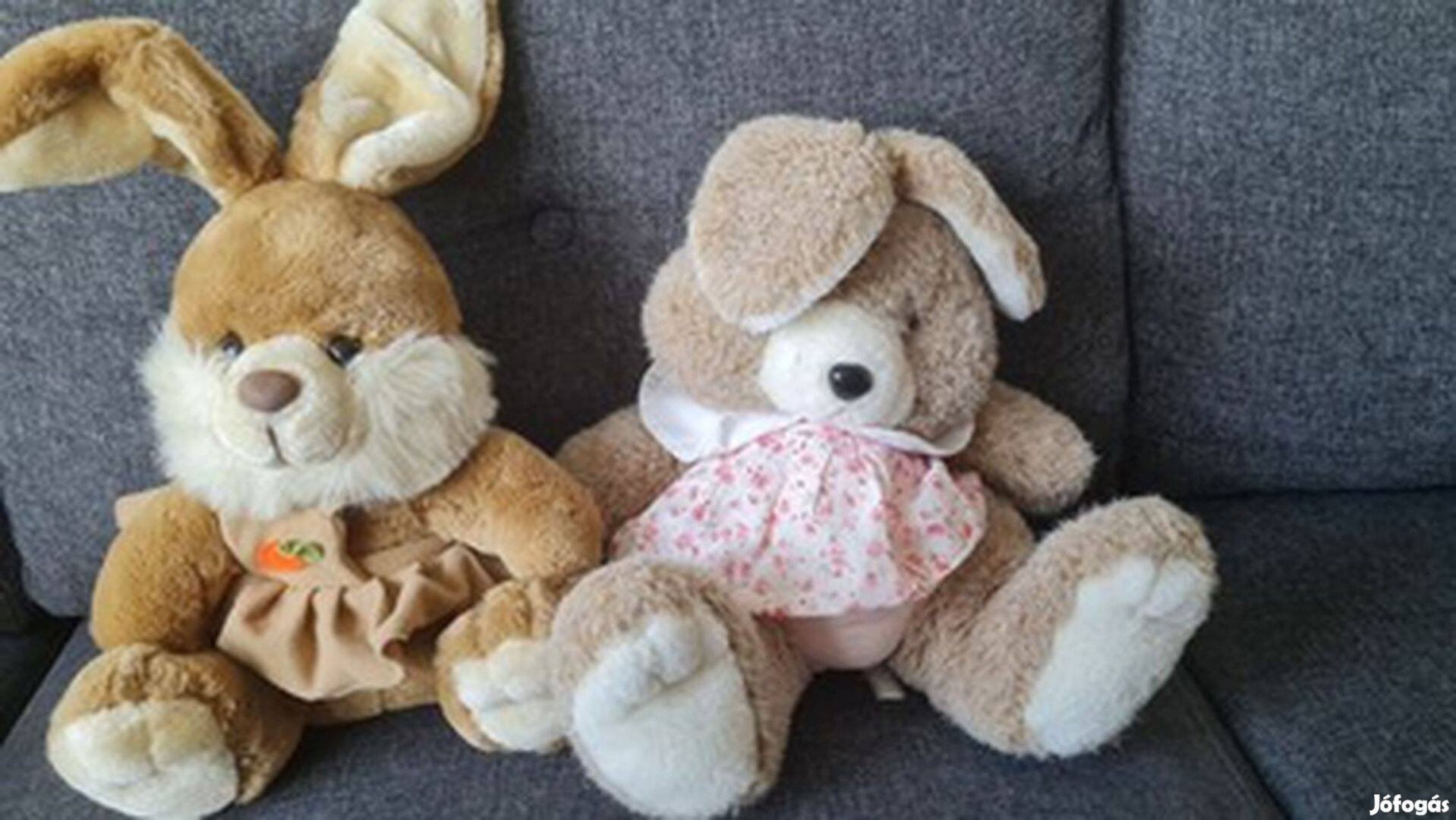 Eladó újszerű állapotban levő 2 db nyuszilány szőrme figura. 32cm magasak, az egyik nyuszi barna, a másik drapp.