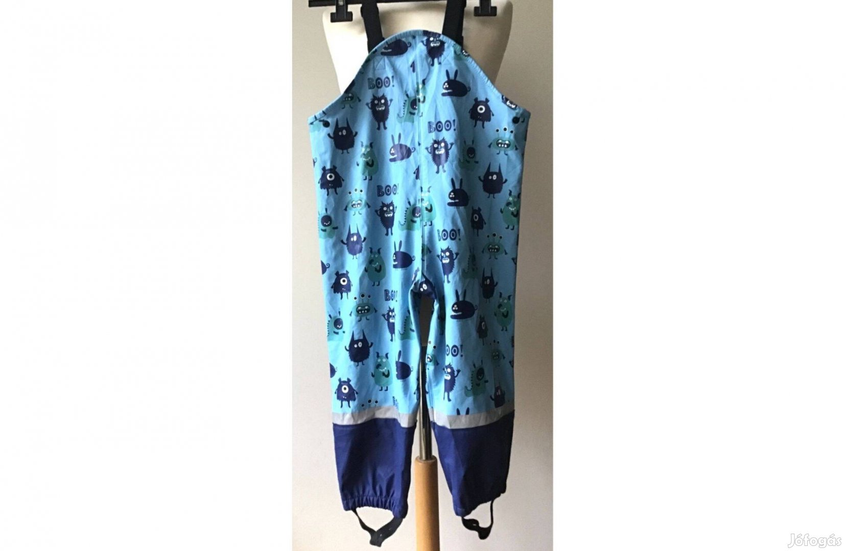 Szörnyecskés Gyerek esőnadrág, vízálló kantáros nadrág- 86-92 cm