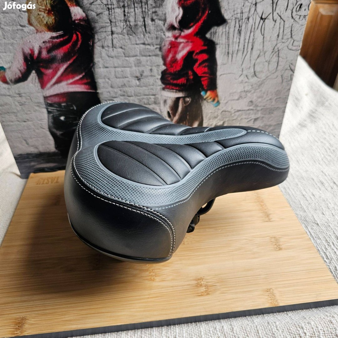 Szürke fekete rugos kerékpár nyereg 710 gr 20cm szél 25cm hossz