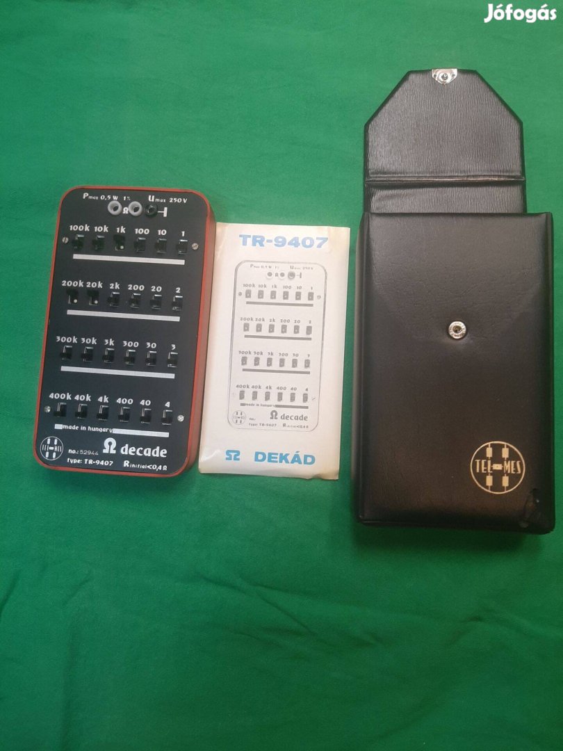 Precíziós dekád ellenállás TR-9407 típus, kiváló állapotban, magyar gyártmány. Ideális elektronikai mérésekhez, kalibráláshoz és oktatási célokra. Több ellenállásérték pontos beállítására alkalmas, könnyen kezelhető tolókapcsolókkal. Gyakorlatlag új állapotú
