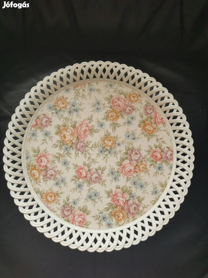 Eladó egy használaton kívüli nagyon szép, virágmintával ellâtott kerek műanyag tálca.