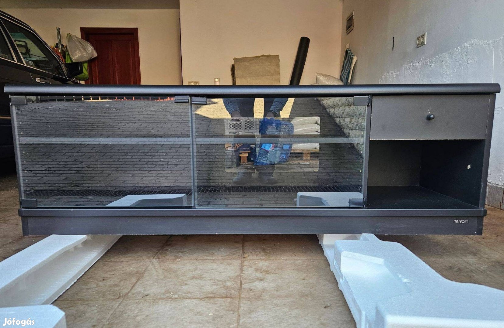 A két üveges rész szélessége 52cm, a fiókos részé pedig 35cm