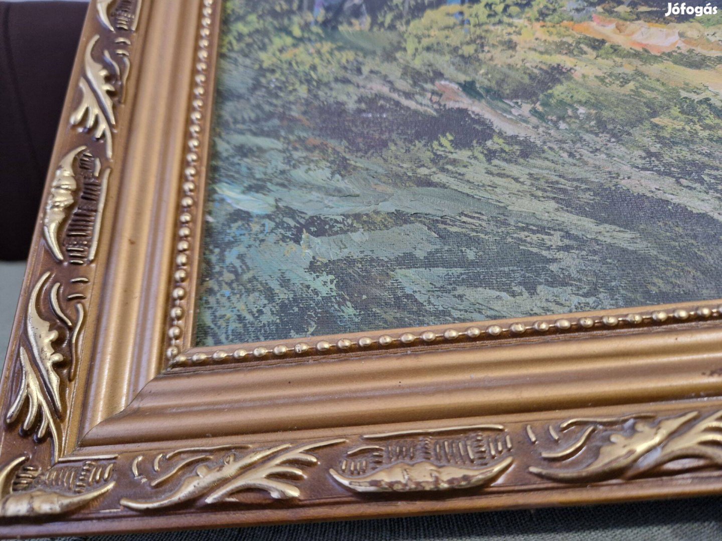 Klasszikus stílusú, hegyvidéki tájat bemutató festmény, arany színű, díszes, barokk stílusú fakerettel, személyes átvétellel a 14. kerületben eladó. A festmény mérete kerettel 58 x 68 cm. Ára: 8.000,- forint.