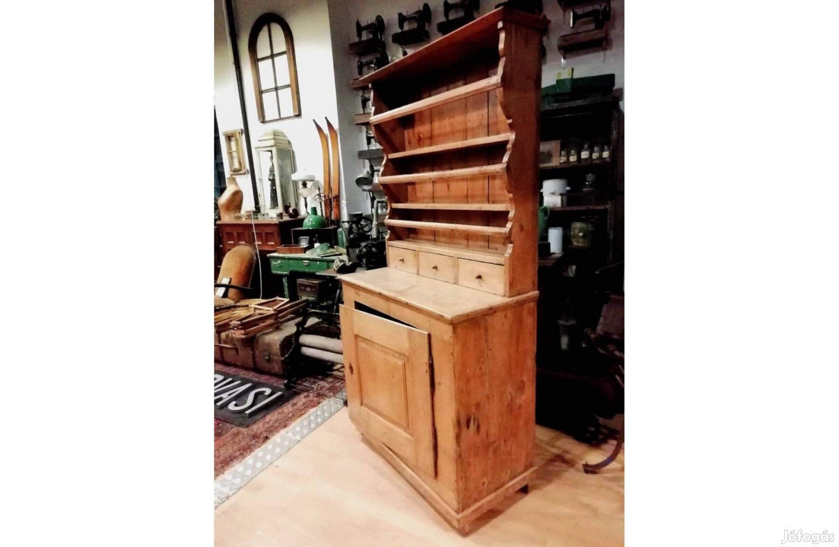 Eladó a képeken látható 19. század végi Tálas szekrény. Natúr fa, fenyő, szerkezetileg jó állapotú, népi bútor. Fiókok és a külső felület kezelt, szú elleni védelem megtörtént. Méretek a fotókon, ára: 199.990.-