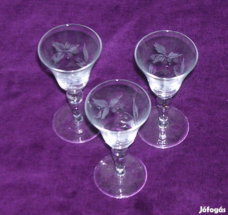 Talpas, csiszolt üvegpoharak. 3 darab, 10 cm magas