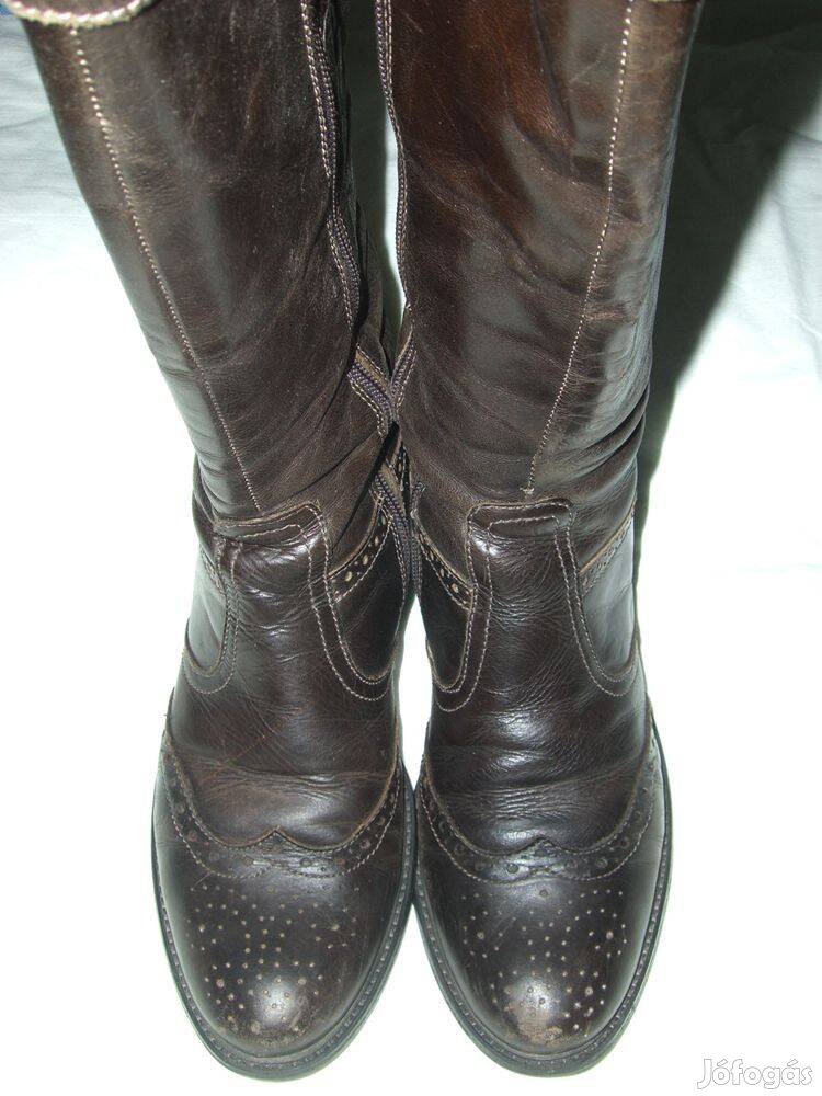 Sötétbarna Tamaris bőr csizma