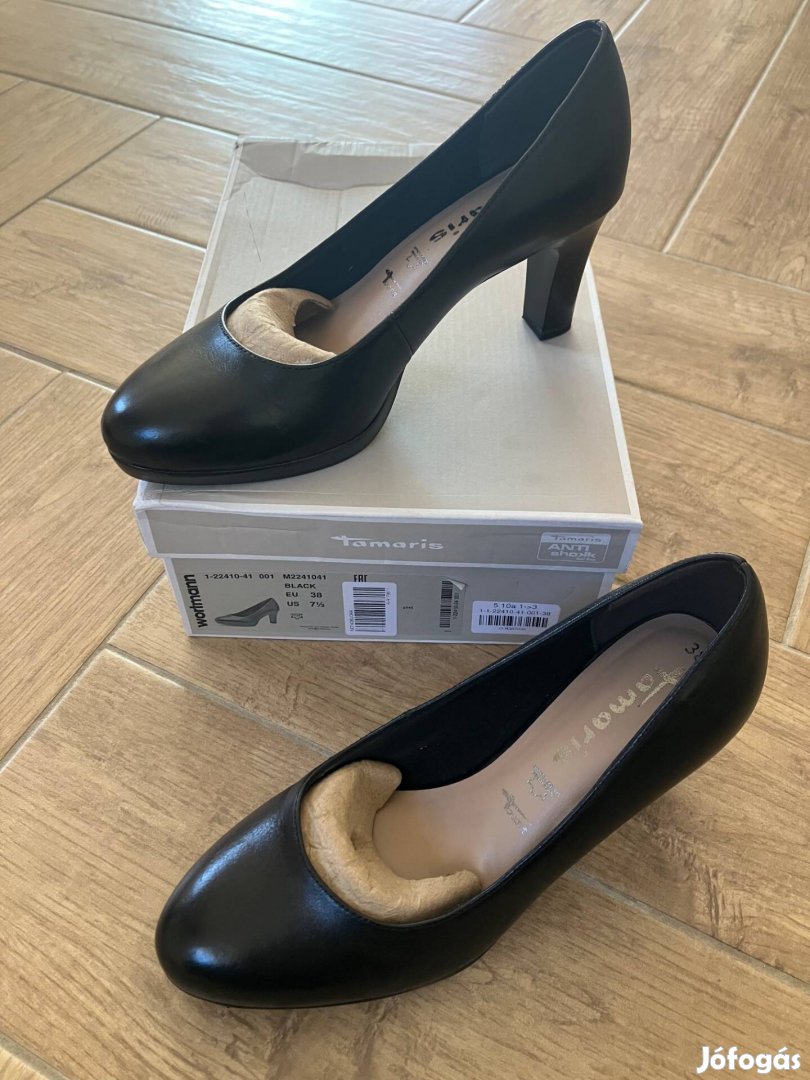 Tamaris fekete bőr magassarkú 38-as