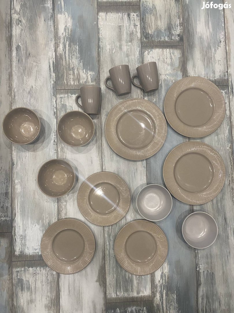 Eladó tányérkészlet poharakkal (kerámia). Párszor használt, jó állapotúak. Eltérő méretűek és mélységűek. A képen látható készlet egyben vásárolható meg 2999Ft-ért. Budapesten, a 10. kerületben személyesen átvehetőek.