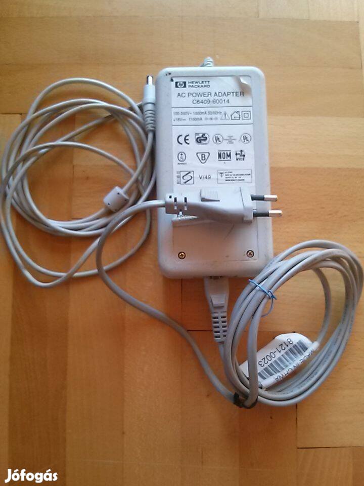 Kettős szigetelésű Hewlett Packard, stabil DC: 18 V, I: 1100 mA -es tápegység.